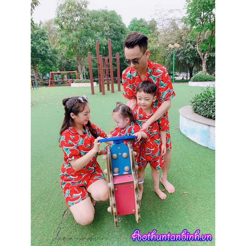 Áo gia đình trái cây là một xu hướng thời trang cực kỳ vui nhộn và nổi bật, thường được lựa chọn cho các dịp đi biển, du lịch, hoặc chụp ảnh kỷ niệm. Đây là kiểu áo đồng phục dành cho cả gia đình, với họa tiết trái cây tươi sáng, rực rỡ như dưa hấu, cam, chuối, thơm… tạo cảm giác năng động, trẻ trung và đầy sức sống 🍍🍉🍊.